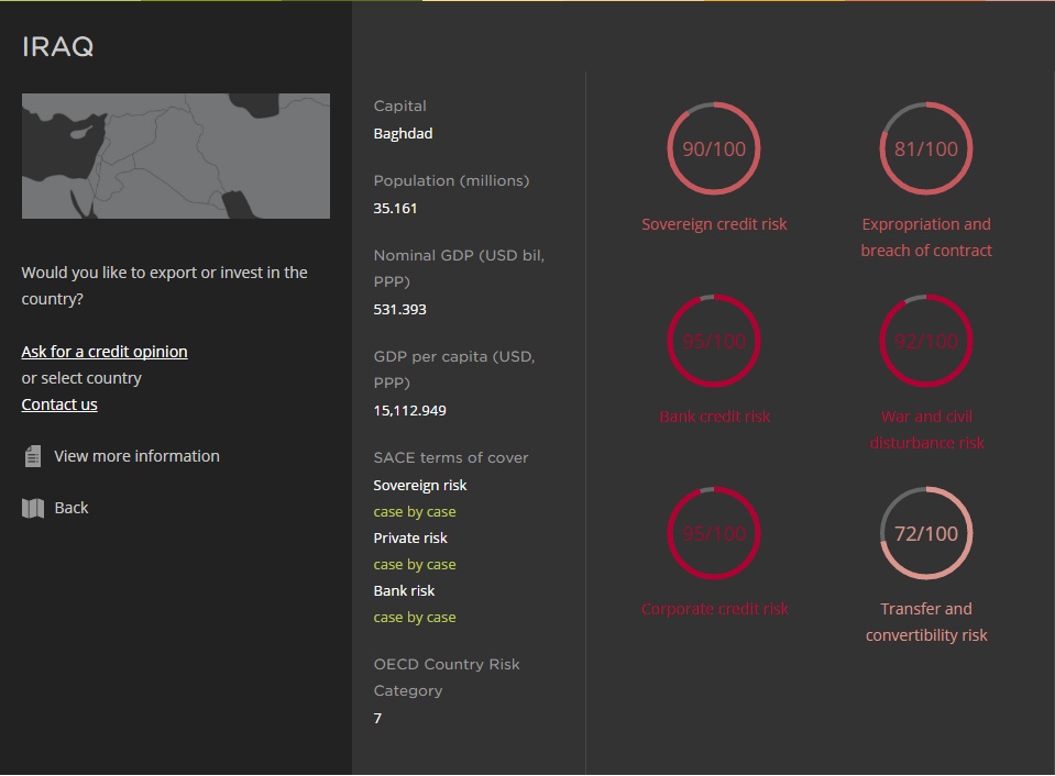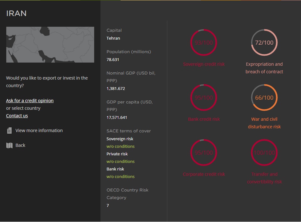در اینجا می توان تحلیل ساچه از وضعیت اقتصادی کشورهای مختلف جهان و ریسک سرمایه گذاری در آنها را مشاهده کرد. آیتم Sovereign credit risk که از آن به عنوان ریسک اعتباری مستقل یاد می شود، نخستین آیتمی است که گزارش ساچه به آن اشاره دارد.