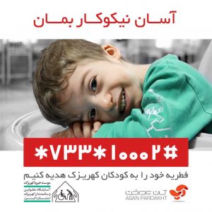 شما می توانید با شمارهگیری #۱۰۰۰۲*۷۳۳*و پرداخت فطریه به کودکان نیازمند کهریزک، مهربانی را ادامه دهید.
