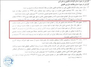 حسابرس قانونی ماجرا را این طور روایت کرده است: طبق ماده ۳۳ اساسنامه، عدم حضور هر یک از اعضای هیات مدیره بیش از چهار جلسه متوالی یا شش جلسه متناوب در طول یک سال شمسی بدون عذر موجه، خود به خود موجب سلب عضویت وی در هیات مدیره می شود.